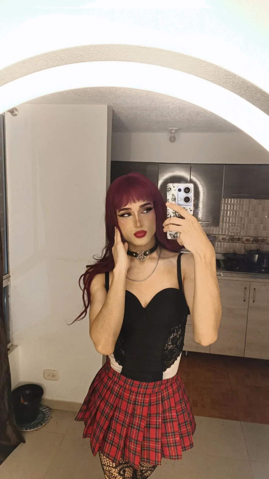 Cabello rojo, mirada intensa y una vibra que mezcla lo oscuro con lo irresistible. No todo es lo que parece… ven y descúbrelo🐉👀